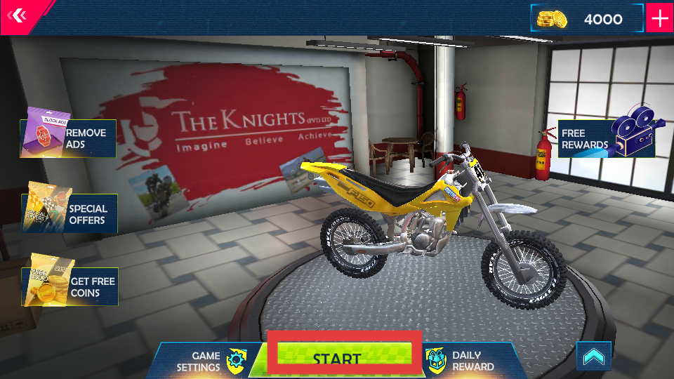 1、玩家進入游戲點擊START按鈕,開啟摩托車特技表演,駕駛摩托車進入特技場景,準備展現各種炫酷特技。