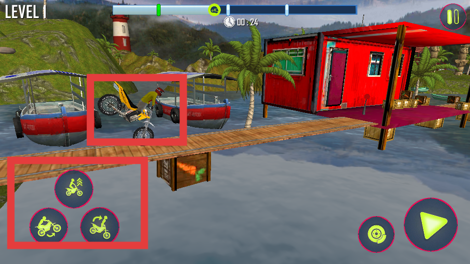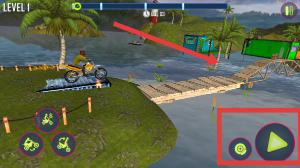 3、通過屏幕上的控制按鈕,如方向鍵、加速鍵等,操控摩托車的行駛方向、速度,為完成特技動作做準備。