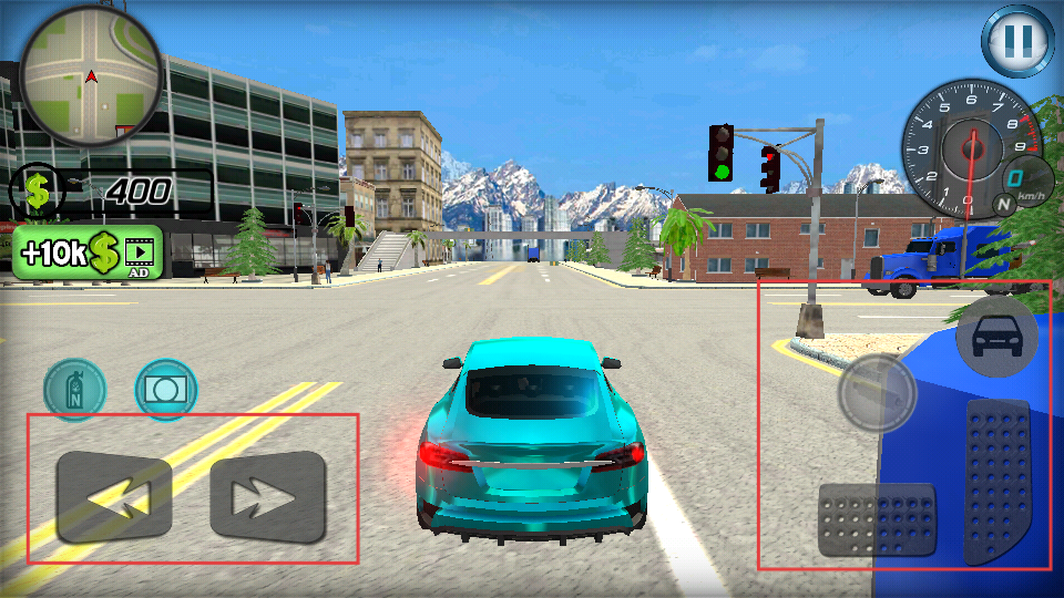 4、找到并駕駛城鎮中的車輛,通過屏幕上的方向按鈕和踏板按鈕操控車輛行駛,在城鎮道路上穿梭,完成相關的任務。