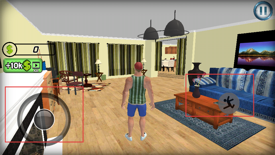 2、通過屏幕左側的虛擬搖桿操控角色移動,在城鎮的不同場景中行走,還可與場景內的物品進行交互。