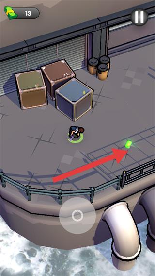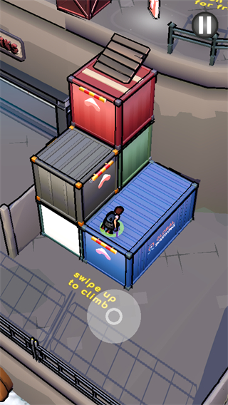 4、遇到堆疊的集裝箱時,按照提示,通過滑動等操作,操控特工攀爬集裝箱,到達更高的位置,探索新的區域,推進冒險進程。