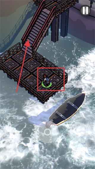 1、進入游戲看到特工在碼頭平臺的場景,操控特工沿著樓梯前進,探索碼頭區域,為后續冒險做準備。