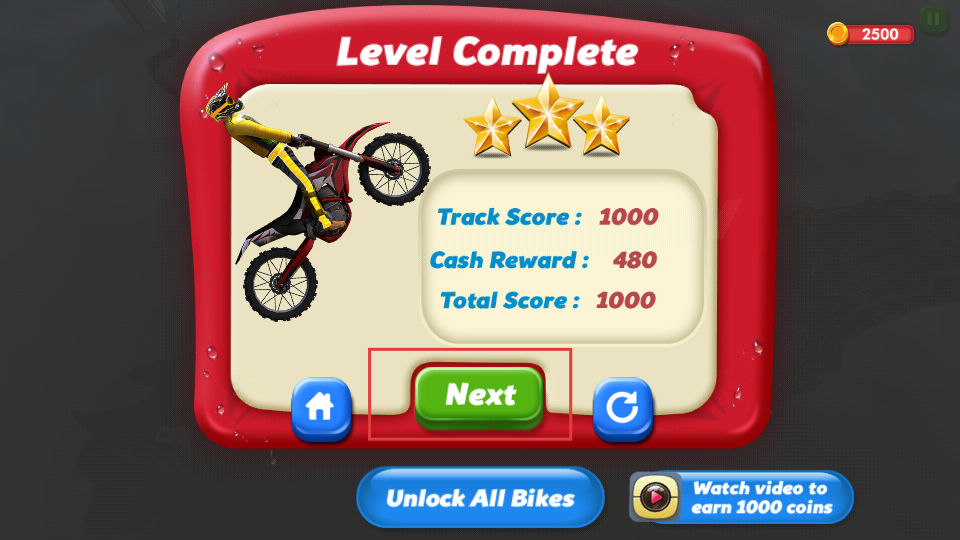 4、成功完成當前關卡后,在關卡結算界面點擊Next按鈕,進入下一個難度更高、更具挑戰性的關卡。