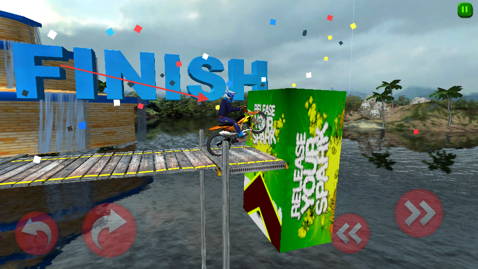 3、操控摩托順利通過起點,開始正式的賽道行駛,按照賽道指引最終沖過FINISH標志,完成關卡挑戰。
