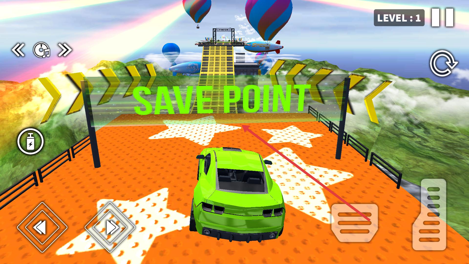 4、賽車行駛到標有SAVEPOINT的區域,繼續操控賽車,保持好方向和速度,朝著最終的終點前進,爭取順利通過第一關,完成特技賽車挑戰。