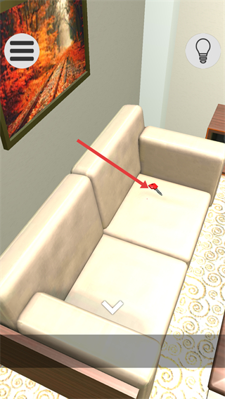 3、在客廳的沙發等區域尋找線索,可能會發現鑰匙等物品,收集這些物品,為后續解開更多謎題或打開鎖具做準備。