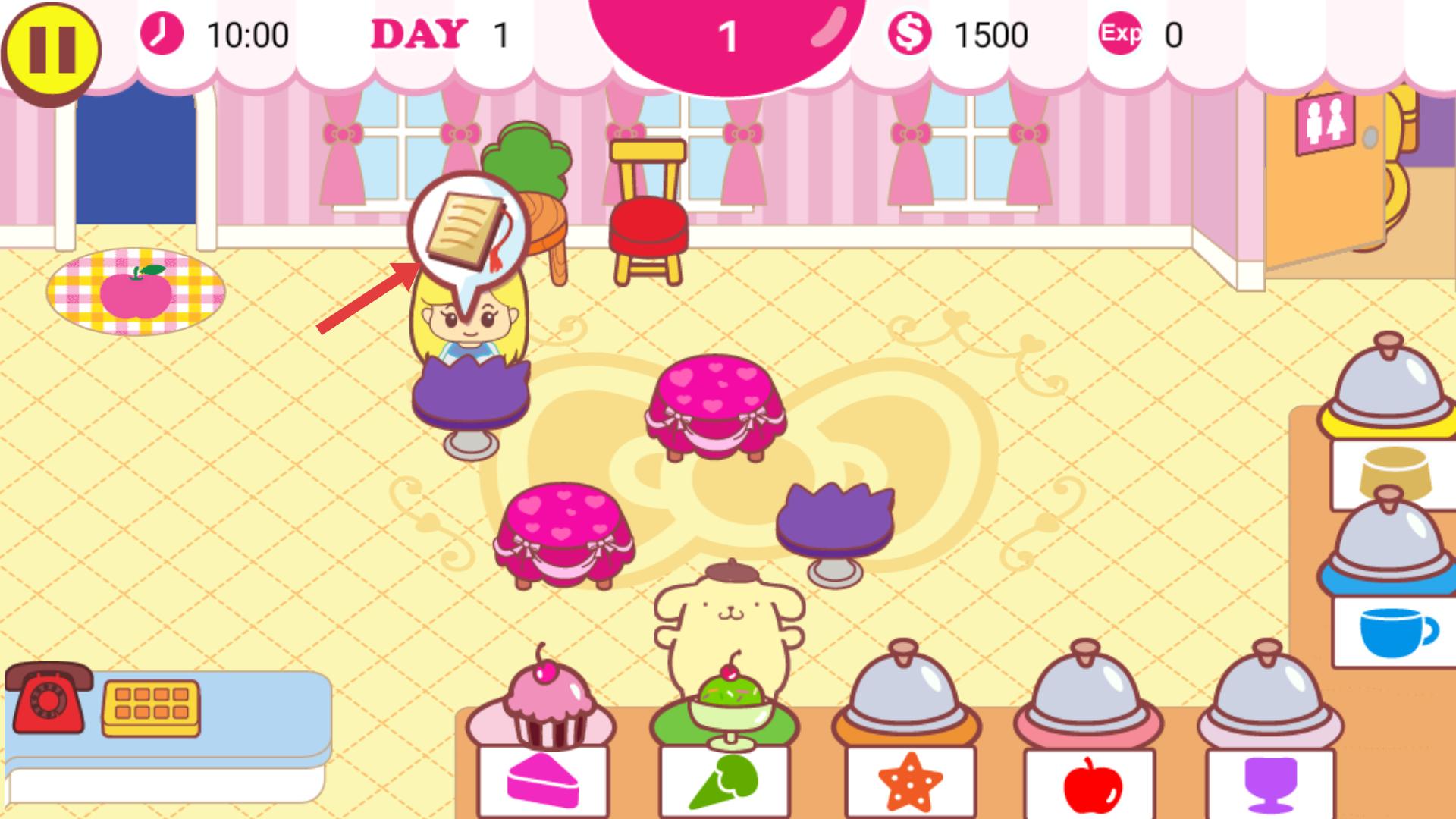 1、在游戲初始界面,點擊Tap to start區域,即可進入Hello Kitty主題的咖啡館經營游戲,開啟第一天的經營。
