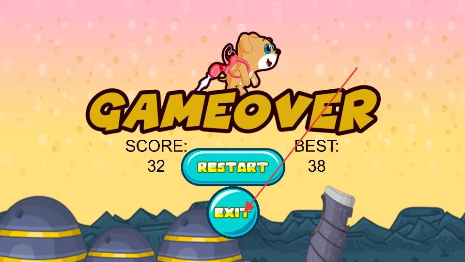 4、若狗狗碰到障礙物或被敵人攻擊導致游戲結束,會彈出GAMEOVER界面,此時可點擊重新開始按鈕,再次挑戰冒險。