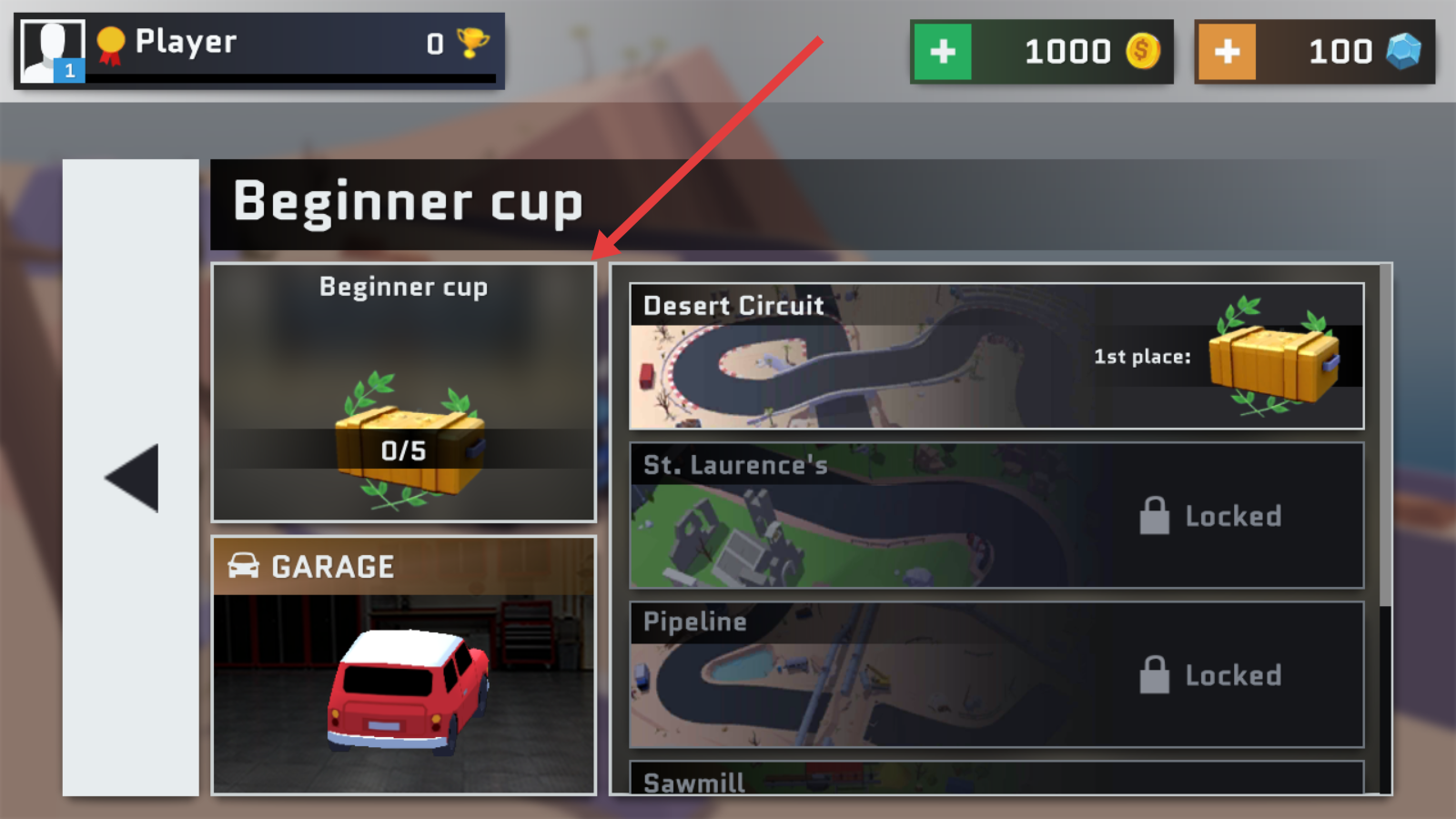 4、在賽事選擇界面,例如Beginner cup新手杯賽選擇你想要參加的比賽,不同賽事可能有不同的賽道和獎勵,滿足條件可解鎖新賽道。