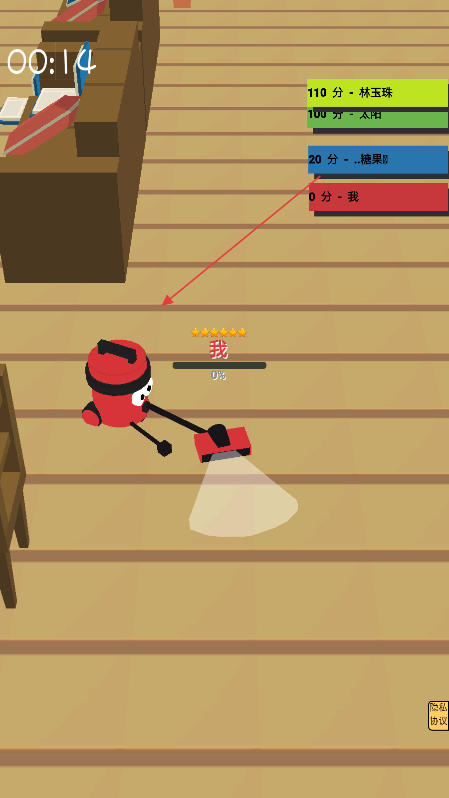 2、進入游戲后,通過操作控制紅色的工業吸塵器在室內場景中移動,如辦公室、房間等,以便清掃垃圾。
