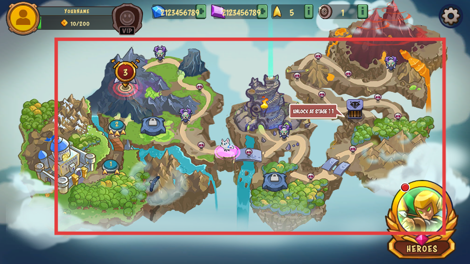 1、游戲地圖有多個區域,標有數字的是可挑戰關卡,還有部分區域需達到特定階段解鎖,按順序推進關卡,逐步探索新區域。