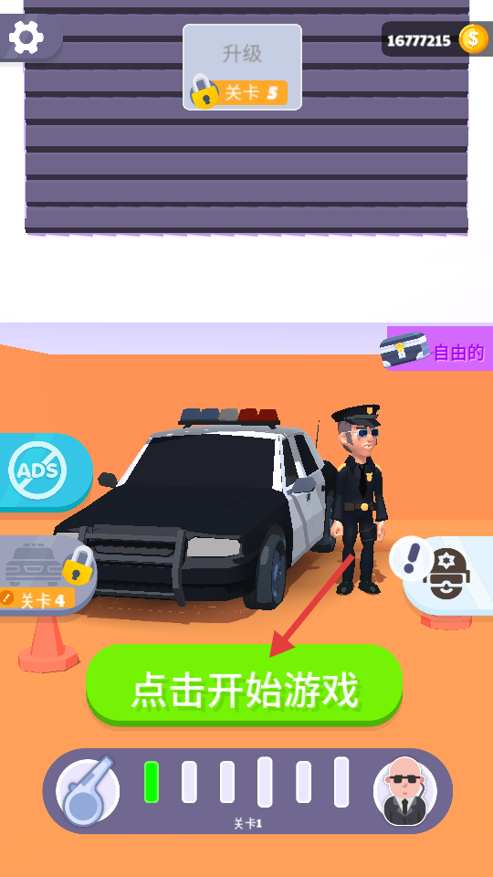 1、界面有點擊開始游戲的綠色按鈕,點擊它就能進入警察模擬器的游戲關卡開啟執法任務,開始體驗當警察的樂趣。