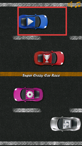 1、玩家下載游戲之后然后點擊進入,在游戲主界面點擊帶有播放箭頭標識的藍色汽車,即可進入賽車游戲關卡。