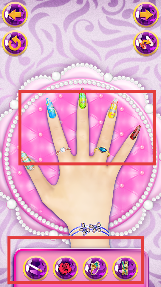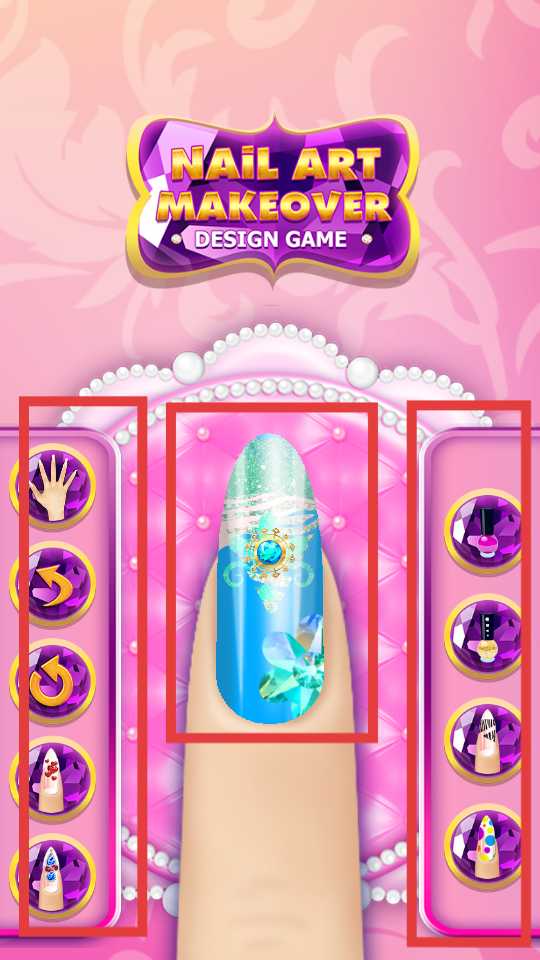 1、點擊屏幕的播放鍵,進入美甲設計界面,從眾多美甲樣式和工具中選擇,為指甲制作挑選合適的基礎裝飾。