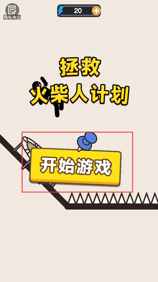 1、進入游戲點擊開始游戲按鈕,就能開啟拯救火柴人的挑戰,開啟后會進入具體關卡場景,準備進行救援操作。