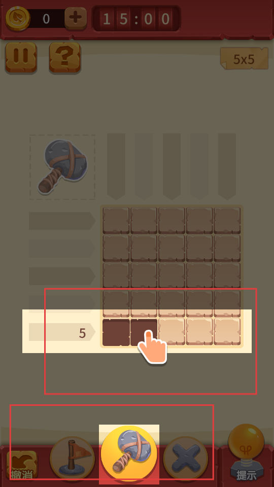 2、界面下方有錘子按鈕,點擊后,按照提示點擊方塊,可對指定方塊進行敲擊,逐步推進游戲進程。