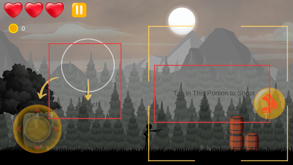 3、進入關卡后,左側有方向輪盤和Crouch標識,操控方向輪盤移動角色,點擊Crouch區域可讓角色蹲下,靈活移動躲避危險。