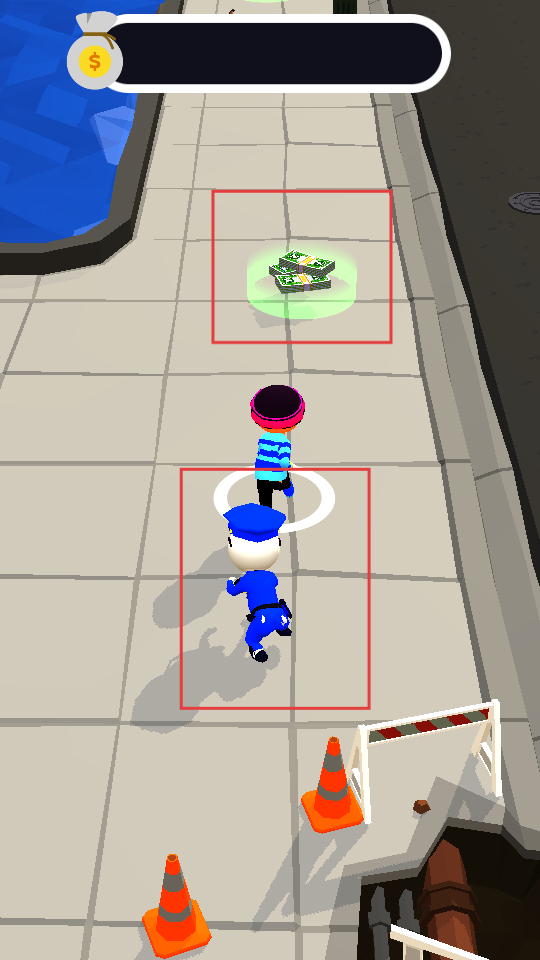 2、角色能力升級:通過收集金幣可強化小偷的速度、隱匿等屬性,還能解鎖偽裝道具和干擾設備,幫助玩家更從容地擺脫警察追蹤。