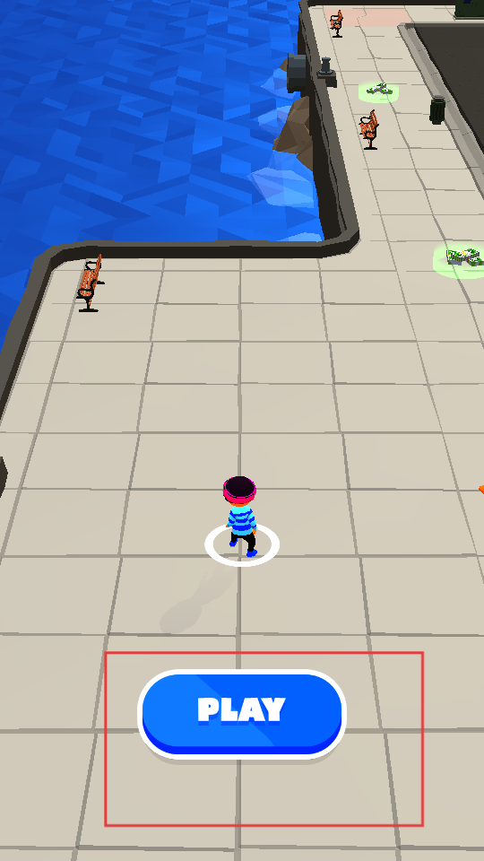 1、點擊PLAY按鈕,進入游戲場景,操控角色在街道上移動,開始游戲,準備收集鈔票,同時躲避警察。
