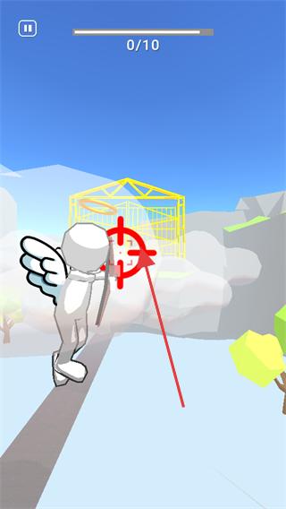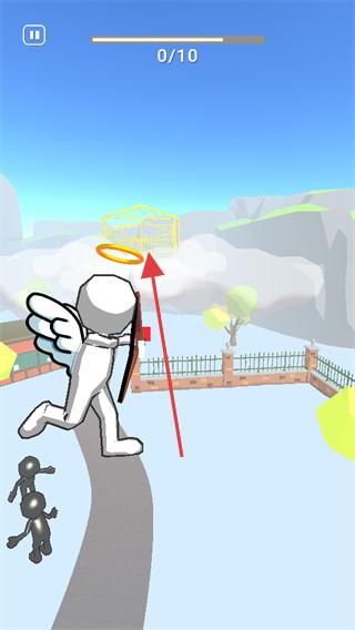 2、在場景中操控天使朝著目標方向移動,接近需要傳遞快樂的區域,同時觀察目標位置,為射箭瞄準做準備。