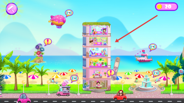 2、在酒店樓層界面,選擇有任務提示如帶有標識的樓層,進入該樓層的房間,開啟照顧寶寶或清潔等任務。