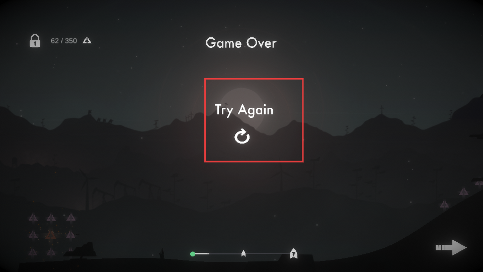 4、若游戲失敗,會顯示Game Over,點擊Try Again,重新開始游戲,再次挑戰,爭取更好的游戲表現。