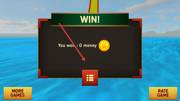4、競賽獲勝后,會顯示WIN的勝利界面,可查看獲得的獎勵如金幣等,然后點擊下方的菜單按鈕,選擇MORE GAMES探索更多游戲。