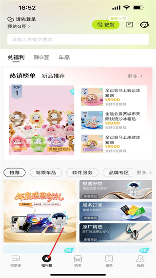 2、商城頁,可通過G豆兌換全運會主題周邊,含生肖盲盒、冰箱貼等,設熱銷榜單,是用戶兌換周邊的專屬板塊。