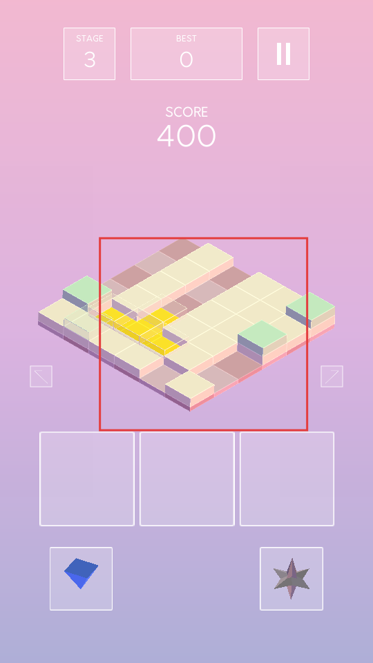 1、基礎排列法則:觀察場中央的3D網格結構,將底部出現的瓷磚拖至空缺處,當某行或某列被完全填滿時就會自動清除并計分。