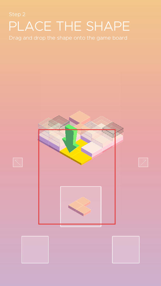 1、點擊播放按鈕,進入游戲,按照提示,拖動下方的形狀,將其放置到游戲板上合適的位置,開始搭建方塊組合。