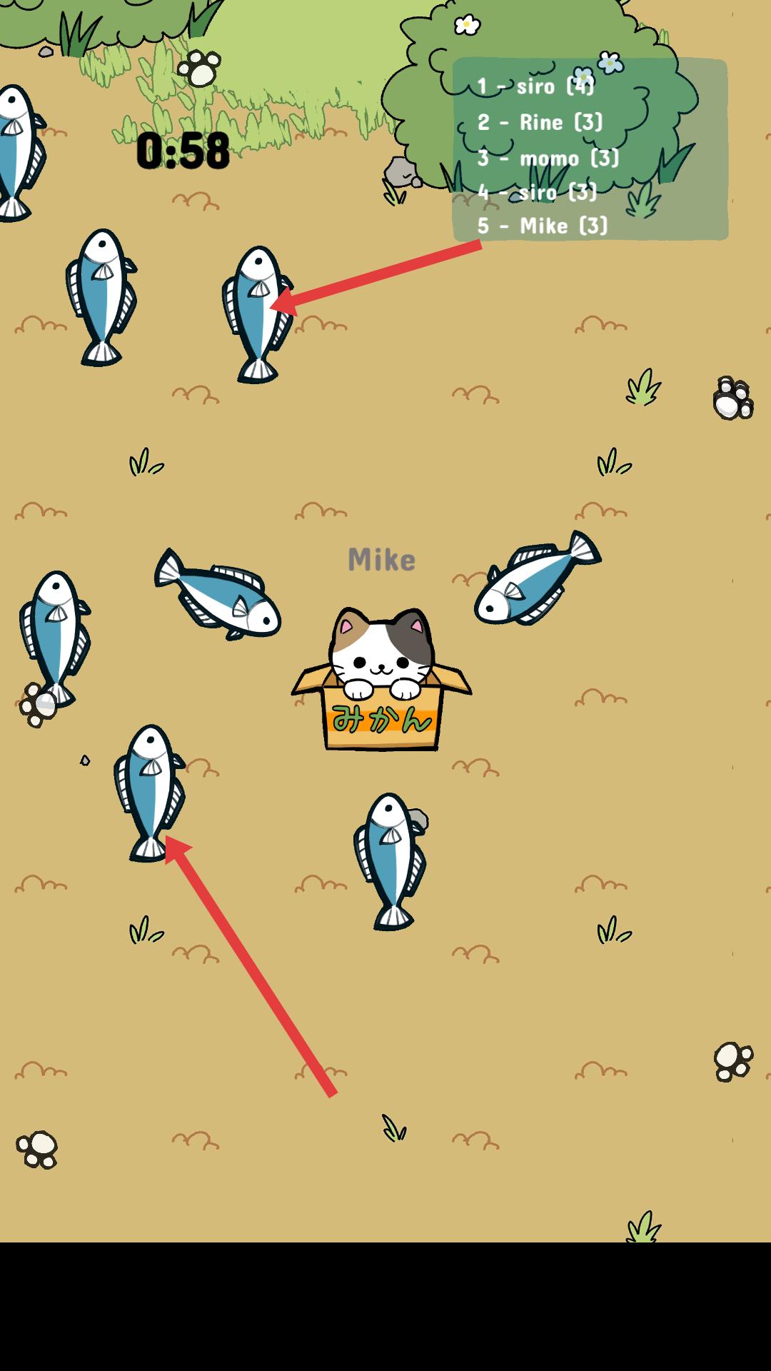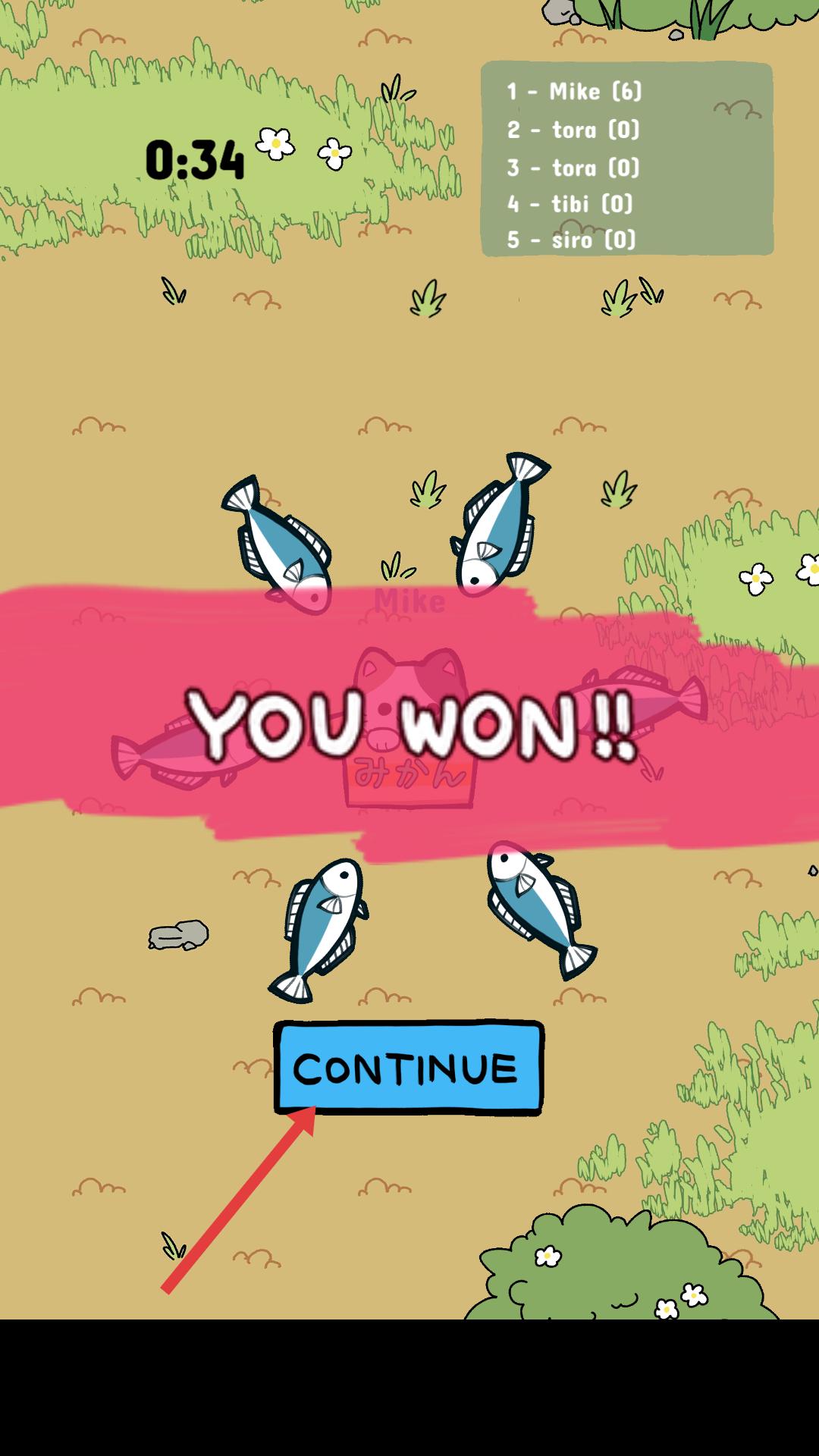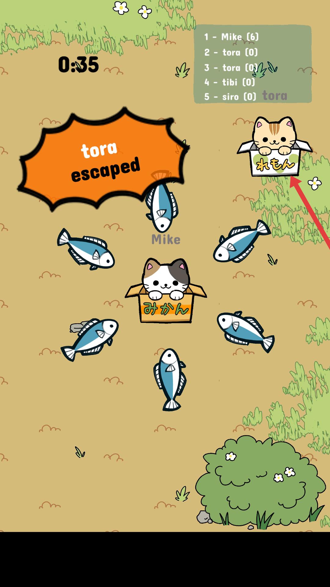 1、游戲開始,輸入名字后,點擊粉色GO按鈕,進入游戲場景,開啟收集魚的任務,準備和其他角色競爭。