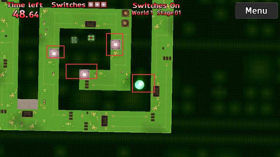 3、游戲中操控光球在電路板場景里移動,目標是觸碰那些粉色的開關,同時要留意剩余時間,在規定時間內盡量完成更多開關的觸碰。