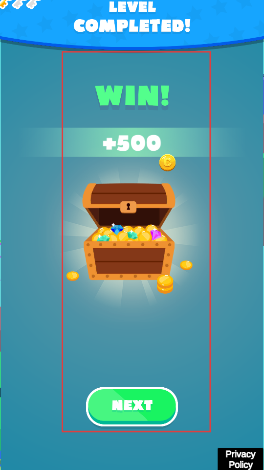4、成功通關后,會顯示LEVEL COMPLETED,獲得加500的獎勵,還有寶箱里的金幣等,此時點擊NEXT按鈕,就能進入下一關繼續挑戰。