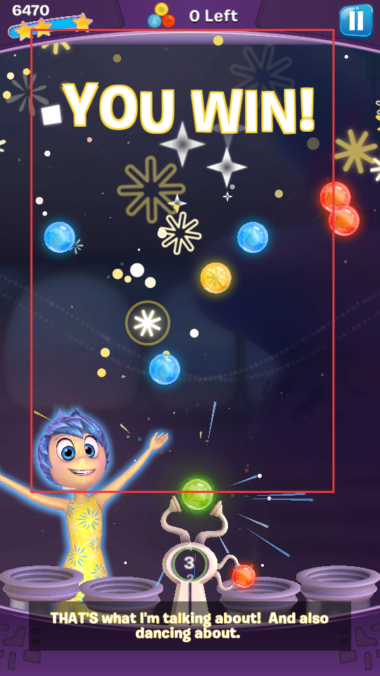 3、持續發射泡泡,消除更多同色泡泡,當完成消除目標后,會顯示YOU WIN,此時游戲暫告一段落,享受勝利的特效和氛圍。