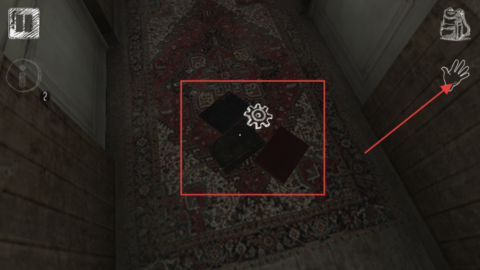3、在場景里會發現地上有物品,還有齒輪圖標,點擊齒輪圖標,可對這些物品進行查看、互動,說不定能獲取有用的信息或道具。