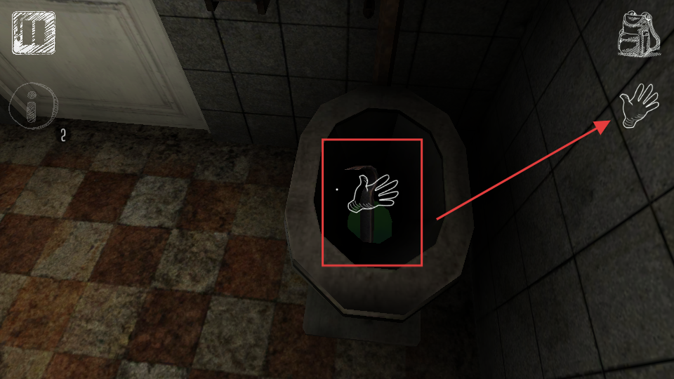 4、當看到像馬桶這樣的物品,且有手的交互提示時,點擊手的圖標,和該物品進行交互,可能會有新的發現或觸發相關劇情。