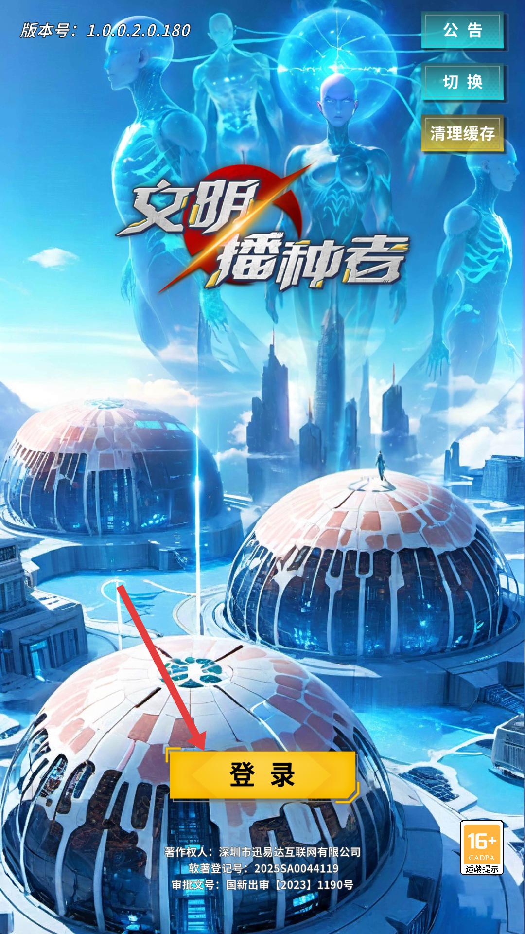 1、在游戲登錄界面,點擊登錄按鈕,即可進入游戲主界面,開始體驗文明播種者的游戲內容。