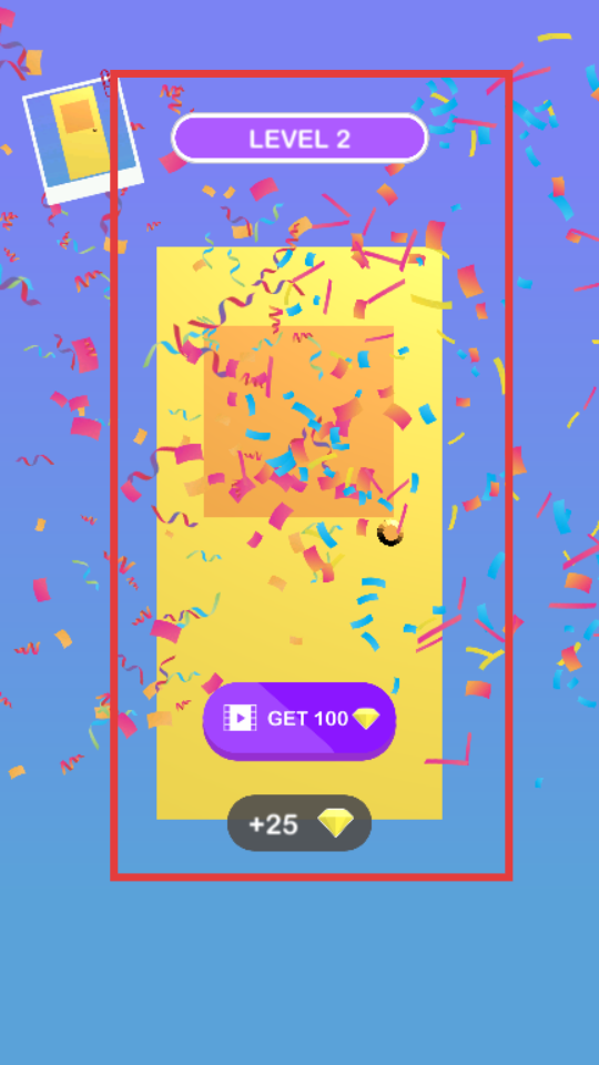 4、當畫面顏色填充完整,符合參考圖時,界面會出現彩色紙屑,顯示獲得鉆石獎勵,還能看廣告獲取更多鉆石,完成關卡。