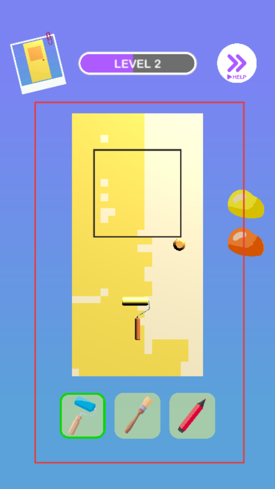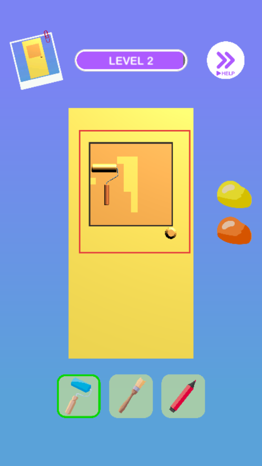 1、進入關卡,點擊TAP TO PLAY,開始游戲,界面有滾筒、畫筆、鉛筆等工具,還有參考圖片,需用工具給畫面上色。