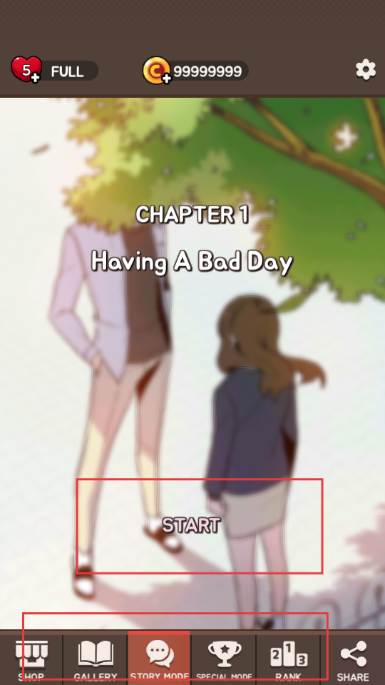 1、點擊Tap to start,進入游戲,能看到有CHAPTER1等章節,還有SHOP、GALLERY等功能選項,選擇STORY MODE開啟劇情相關玩法。