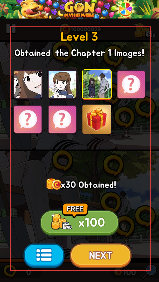 4、成功通關后,能看到獲得的章節圖片、金幣獎勵,還可選擇看廣告獲取更多金幣,之后點擊NEXT按鈕,進入下一個找不同關卡。