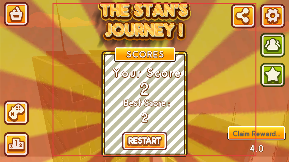 4、游戲結束后,會顯示本次得分和最佳得分,若想重新挑戰,點擊RESTART按鈕,繼續嘗試跳躍收集金幣,沖擊更高分數。