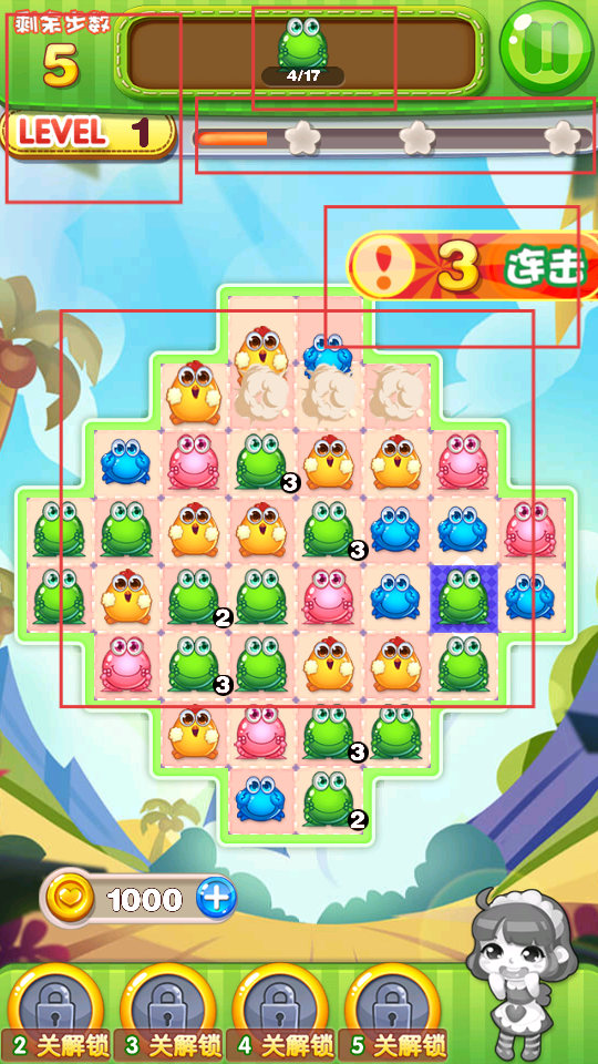 2、特殊道具使用:收集關卡中的金色星星可激活強力道具,如橫向消除一整排或引爆周圍青蛙等效果,善用道具能快速達成苛刻目標。