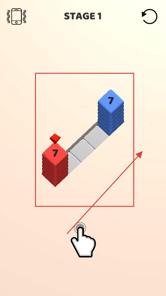 1、點擊Tap To Play進入游戲,看到有紅色和藍色的方塊堆,要操控方塊移動,目標是讓不同顏色的方塊堆靠近。