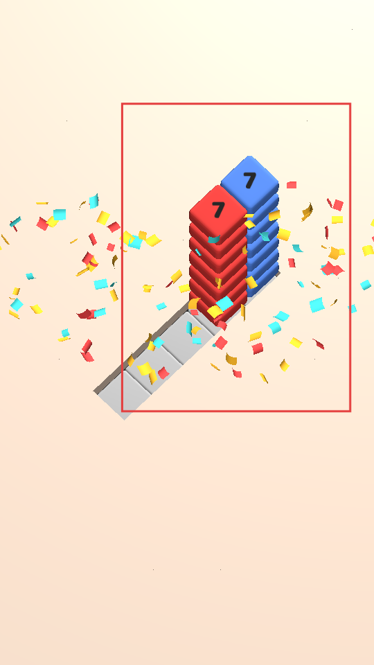 3、當紅色方塊堆和藍色方塊堆成功靠近后,界面會出現彩色紙屑,代表操作成功,朝著關卡通關又邁進了一步。