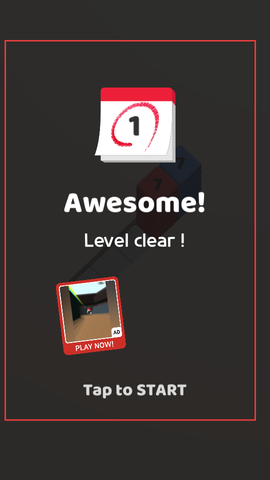 4、成功通關后,界面顯示Awesome Level clear,此時可點擊Tap to START,進入下一個關卡,繼續方塊堆疊的挑戰。