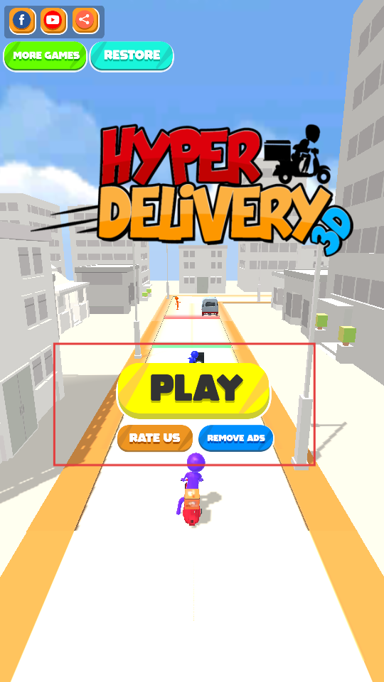 1、點擊PLAY按鈕,進入游戲,操控角色騎摩托在城市道路上行駛,開啟送貨挑戰,準備為不同人物送貨物。