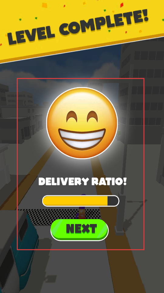 4、成功完成關卡送貨任務后,界面顯示LEVEL COMPLETE,能看到送貨完成比例,點擊NEXT按鈕,可挑戰下一個關卡。