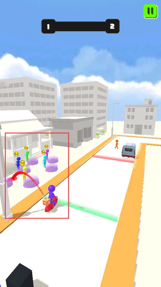 2、在行駛過程中靠近需要送貨的人物,拖動紅色拋物線,將貨物送達,同時注意躲避道路上的車輛等障礙物,確保送貨順利。
