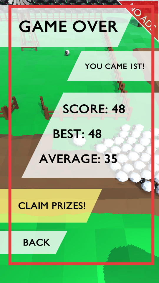 4、游戲有時間限制,在規定時間內,努力聚集最大規模的羊群,游戲結束后會顯示排名、分數等,可點擊CLAIM PRIZES領取獎勵,或點擊BACK返回。